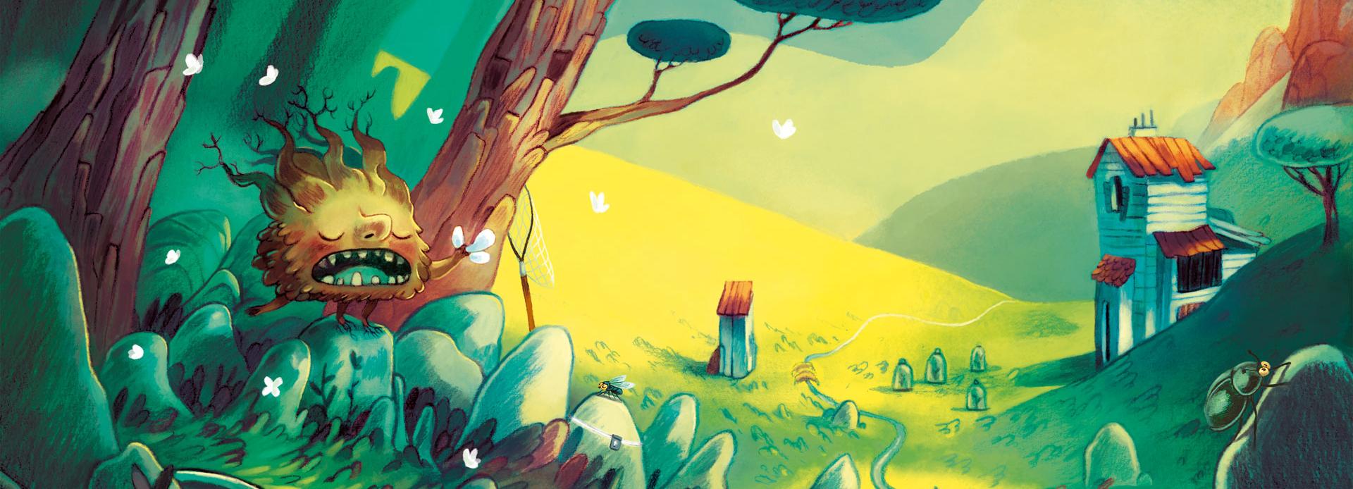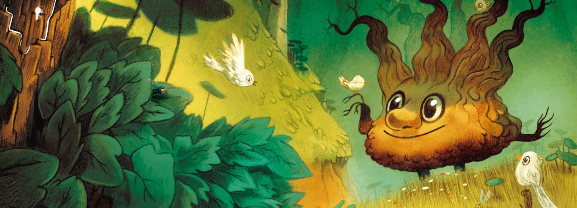 Tétrok à l’allure de vieille souche, descendant des Arbres-Gardiens,le narborok est un grand amateur d’insectes. Il aime aussi les douches froides, la compagnie des oiseaux et papoter.